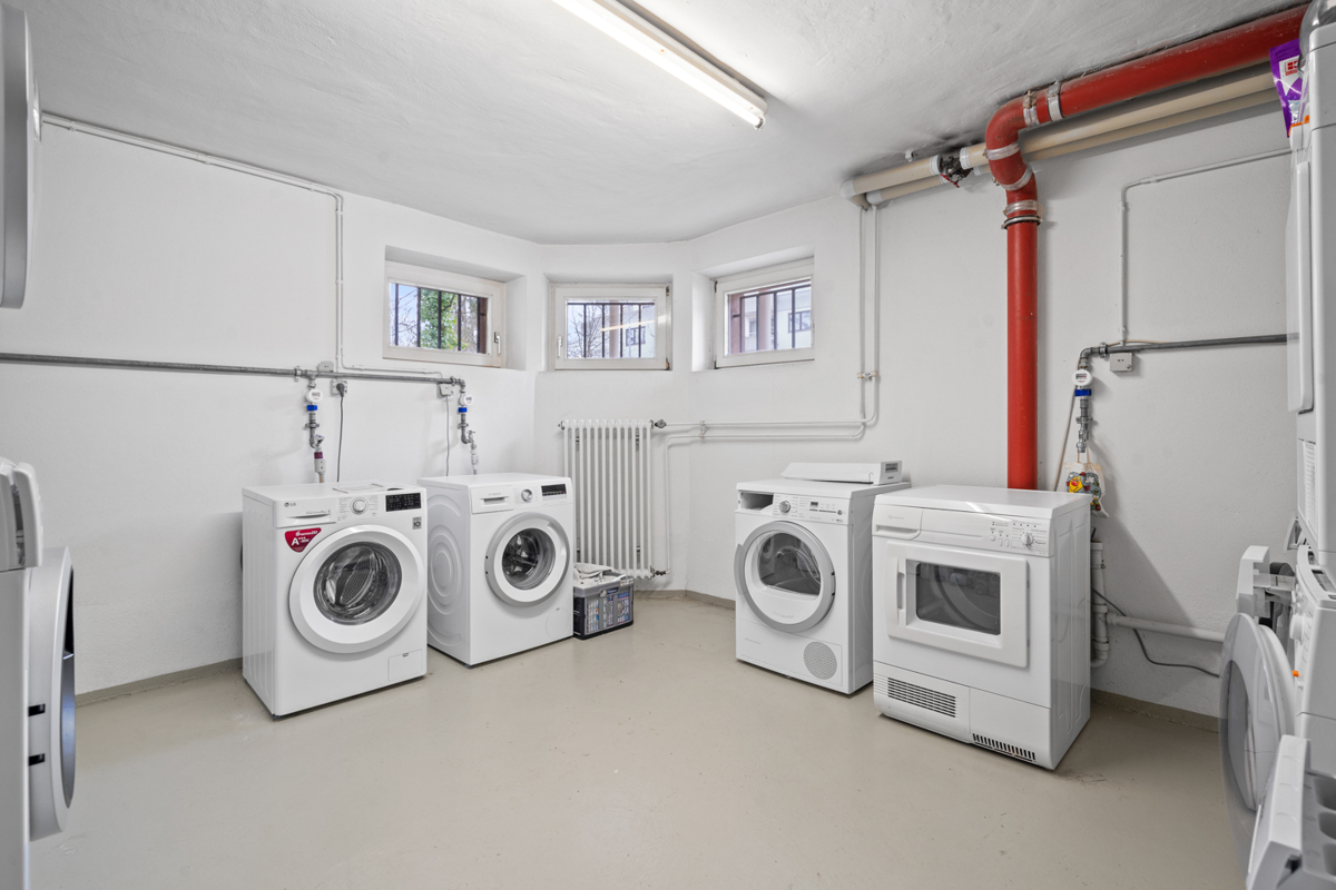 Im Keller befindet sich ebenfalls ein Gemeinschaftswaschraum und ein Trockenraum.