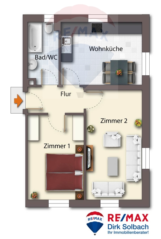 Die Wohnung ist aktuell vermietet und die Kaltmiete beträgt 485,- €/mtl.
