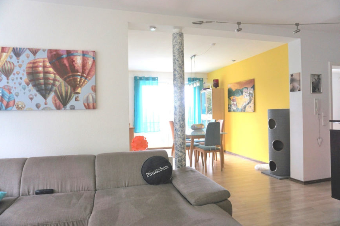 Die attraktive 3,5 – Zimmer Wohnung in ruhiger Ortsrandlage von Waldbronn ist äußerst funktionell geschnitten. Sie betreten die betreten Die Wohnung und gelangen über eine kleine Diele in den großzügigen offen gestalteten Wohn- und Essbereich. Links neben dem Eingang befindet sich die Gästetoilette, daneben verfügt die Wohnung auch über ein geräumiges Badezimmer mit Dusche und Badewanne. Der Essbereich ist mit der halboffenen Küche verbunden und bietet Zutritt zur schönen Terrasse mit Blick ins Grüne. Im hinteren Bereich befinden sich zwei ungefähr gleich groß geschnittene Zimmer, die sich wunderbar als Schlaf- bzw. Kinder oder Arbeitszimmer anbieten.