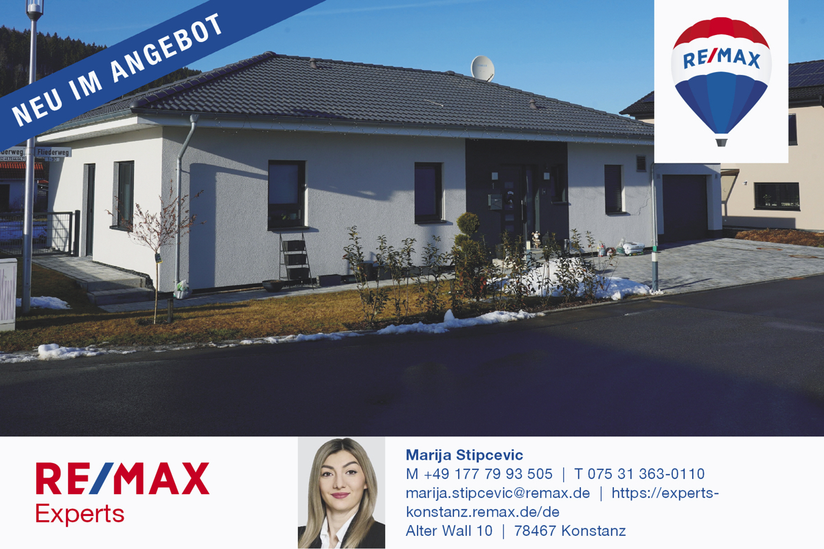 Dieses moderne Einfamilienhaus aus dem Jahr 2020 befindet sich in ruhiger Wohnlage von Geisingen-Aulfingen und überzeugt durch eine durchdachte Raumaufteilung, hochwertige Ausstattung und ein großes Grundstück von ca. 664 m².Der großzügige Wohn- und Essbereich mit offener Küche bildet das Zentrum des Hauses. Dank der großen Fensterfronten ist der Raum hell und freundlich, mit direktem Zugang zur sonnigen Terrasse (ca. 18 m²) und dem weitläufigen Garten. Die moderne Einbauküche ist mit hochwertigen Geräten von Miele und Bosch ausgestattet.